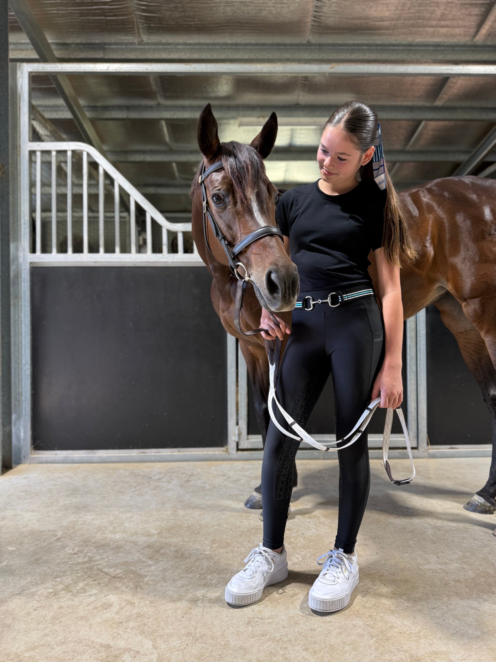 Add a touch of colour and style to your outfit with our Black/Aqua/White Snaffle Bit Belt. Made with high-quality materials, this belt is perfect for adding a pop of colour or matching to PC colour. Elevate their look with this stylish and versatile accessory.