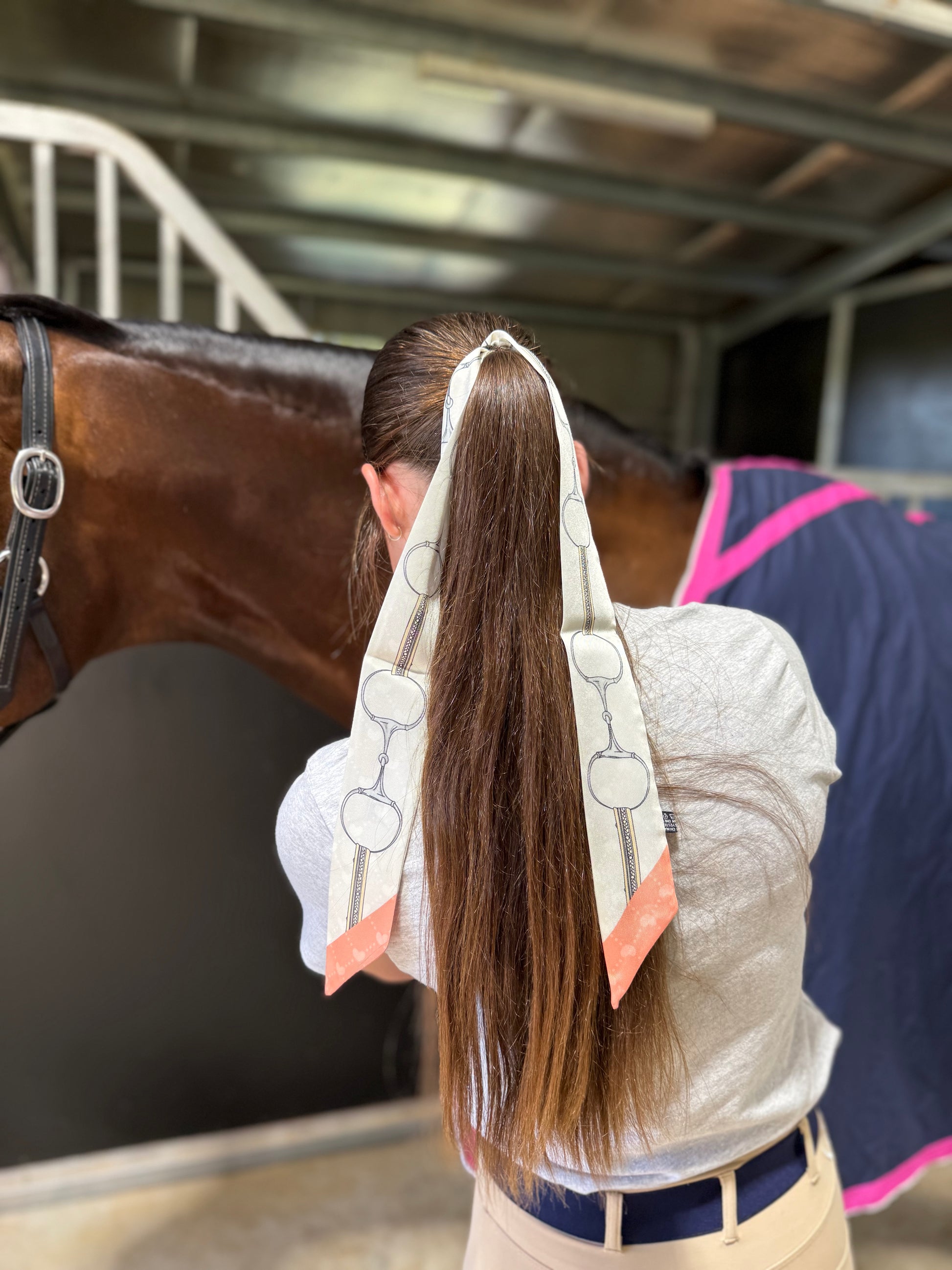 Ride in style with our horse-themed hair tie. Stay stylish while keeping your hair securely in place. Whether you're out riding or just need a simple accessory, our hair tie will add a touch of equestrian charm to your look. Made with durable materials for long-lasting wear.
